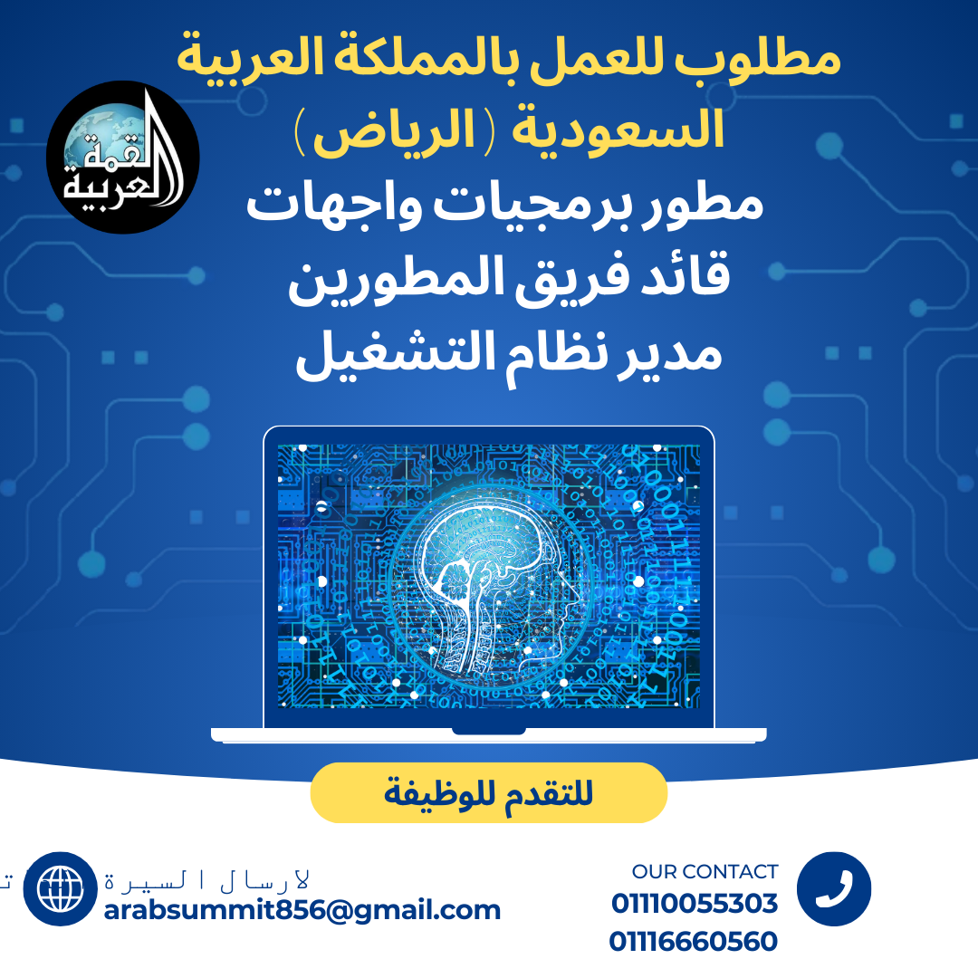 يرجى إرسال السيرة الذاتية إلى: *arabsummit856@gmail.com* او علي واتساب مع ذكر المسمى الوظيفي في عنوان الرسالة.