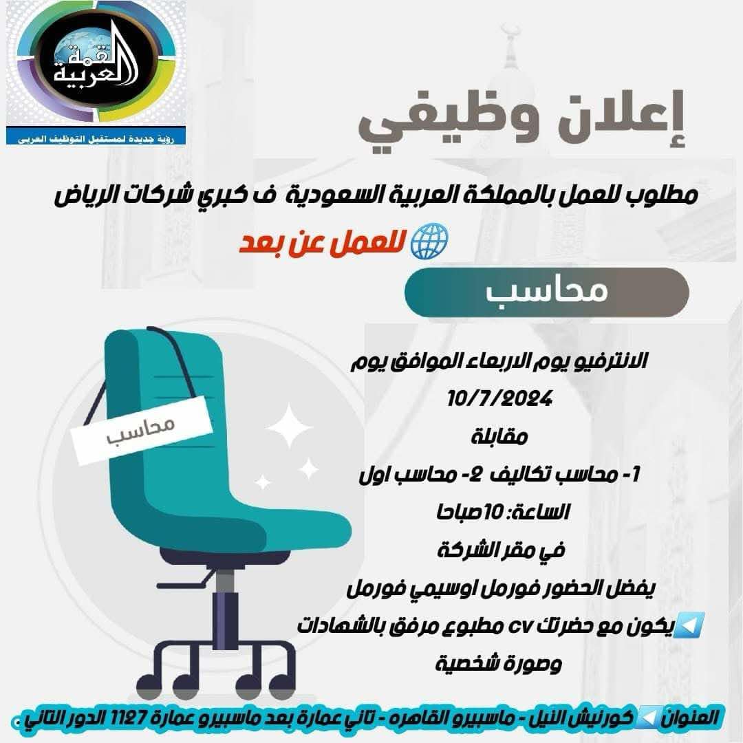 🔴مطلوب للعمل بالملكة العربية السعودية