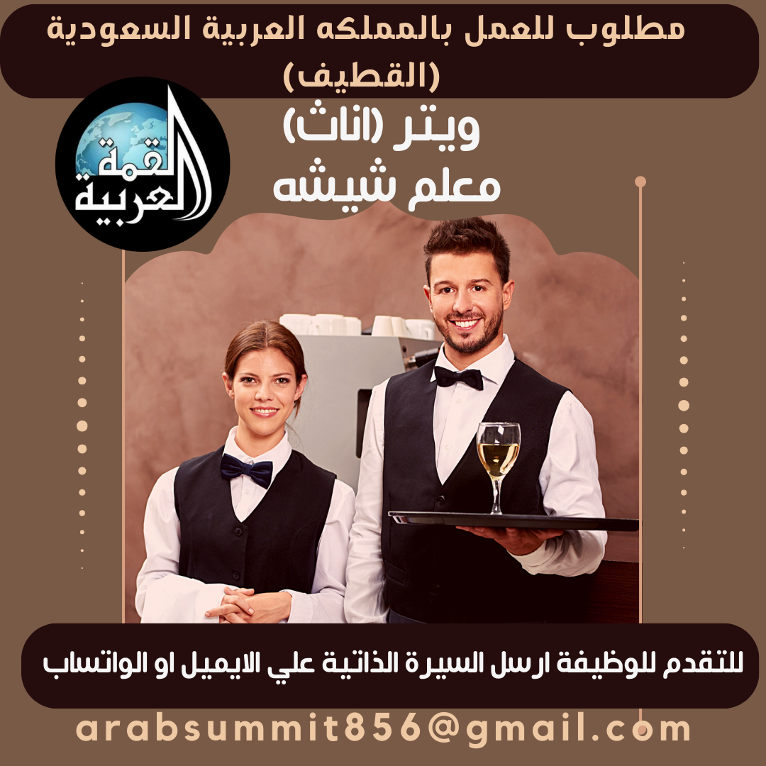 مطلوب للعمل بالملكة العربية السعودية بكبري مطاعم وكافيهات ف تبوك
