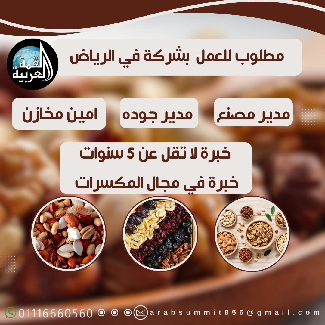 يرجى إرسال السيرة الذاتية إلى: *arabsummit856@gmail.com* او علي واتساب مع ذكر المسمى الوظيفي في عنوان الرسالة.