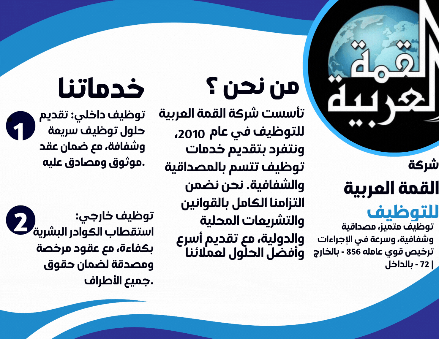 شركة القمة العربية للتوظيف ترخيص ٨٥٦ بالخارج ٧٢